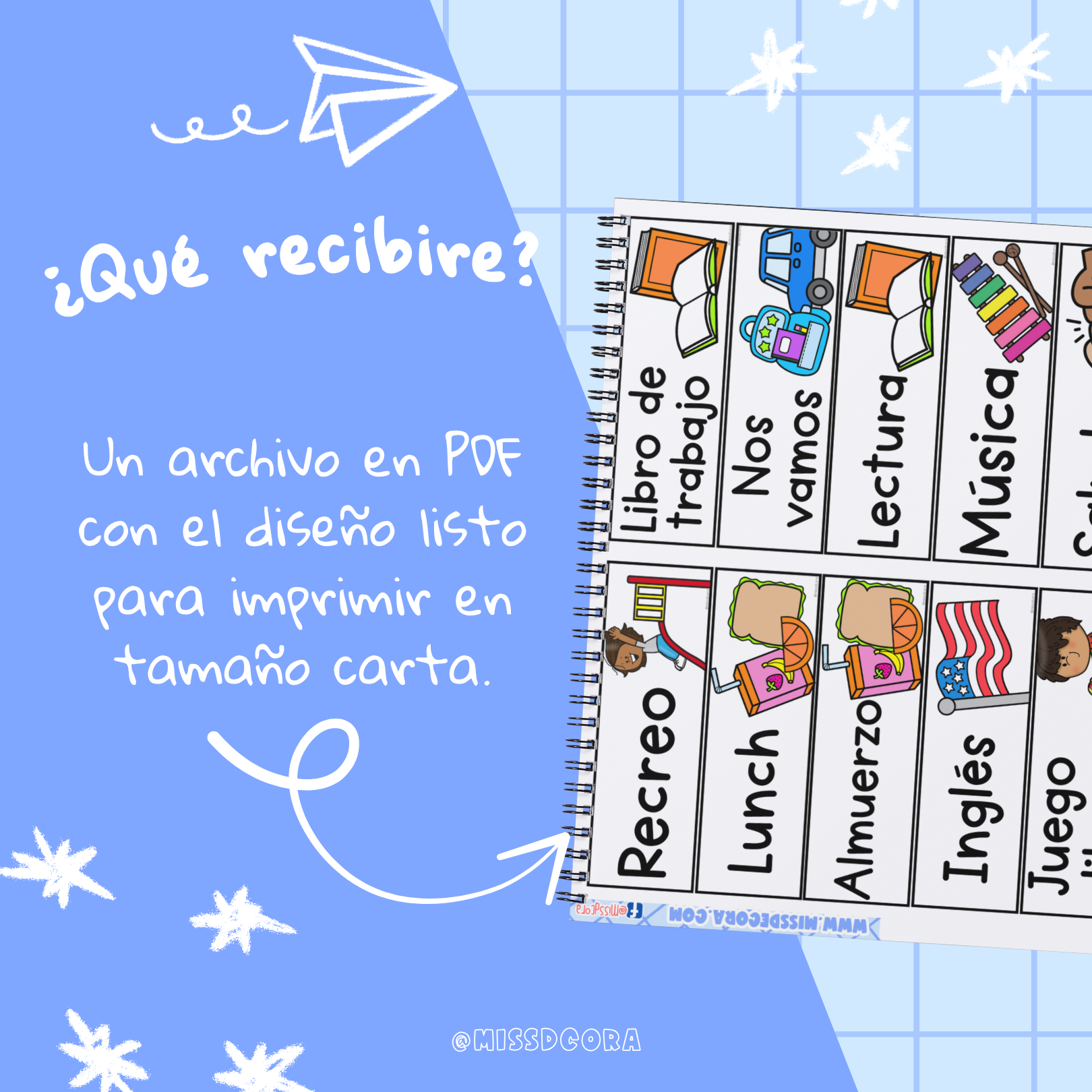 Ideal para preescolar y primaria baja, este recurso te ayudará a mantener el orden del día a la vista de todos, fomentando la autonomía y la anticipación de actividades.
